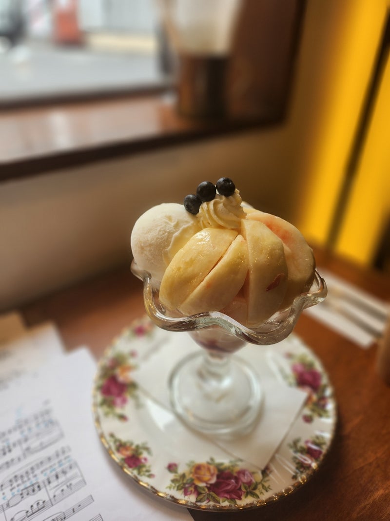 闘病のため休職中のオーナーが久々に出勤していて、特別にパフェを作ってくれた。