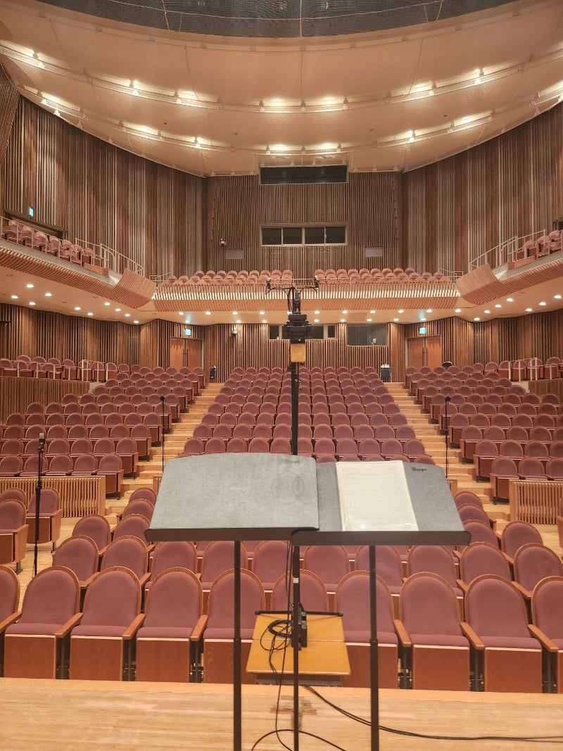 天竜杉が贅沢に使われた、柔らかい響きが特徴の天竜壬生ホールさんにて。