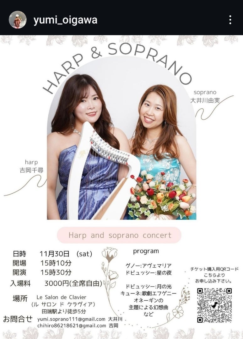 ハープとのジョイントなんてより一層上品で素敵な世界観になりますね![]()